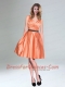 Low Price Orange Taffeta Short V Neck Dama Dresses