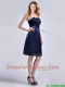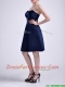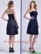 Luxurious Strapless Zipper Up Ruched Dama Dress in Navy Blue