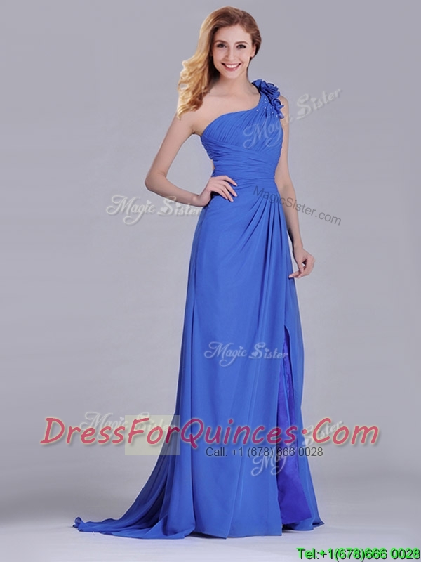 Modest Beaded and Applique Criss Cross Dama Dress with Brush Train