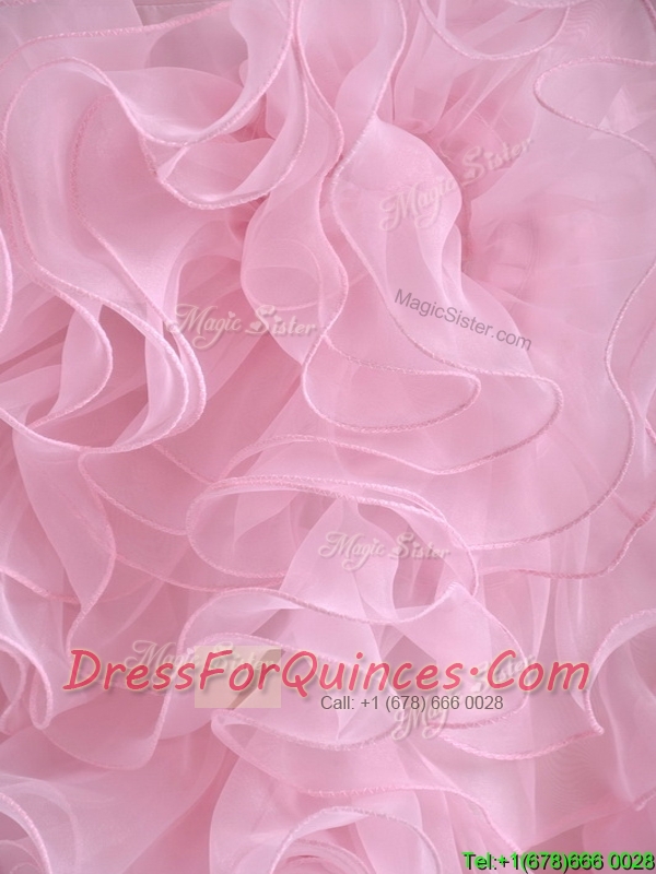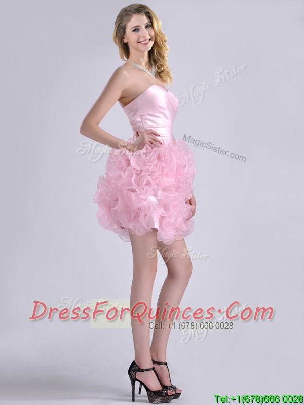 Modest Sweetheart Rolling Flowers Short Dama Dress in Baby Pink