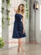 Navy Blue Ruching and Hand Made Flowers Strapless Dama Dresses