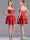 New Arrivals Red Strapless Dama Dress with Ruffled Layers and Beading