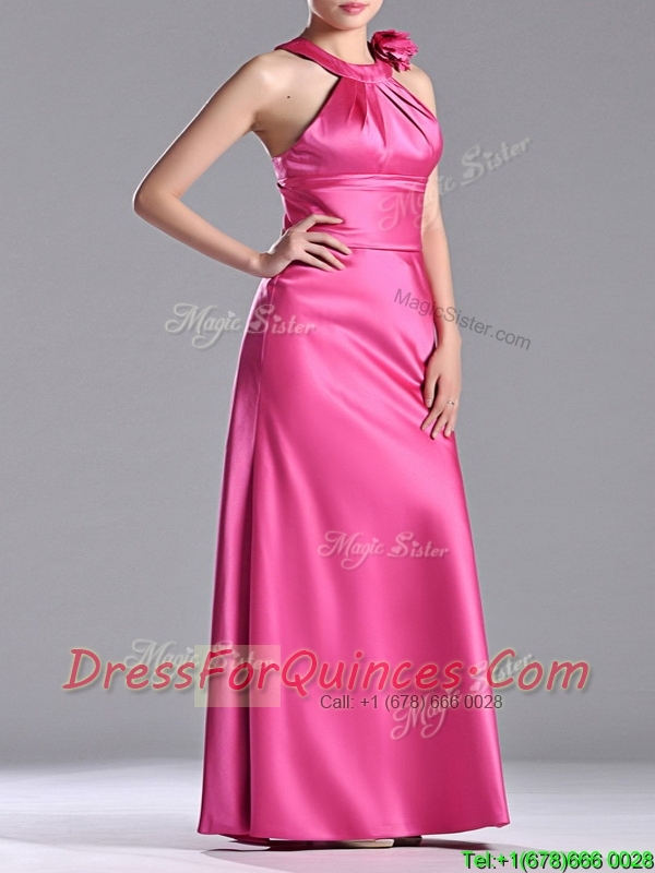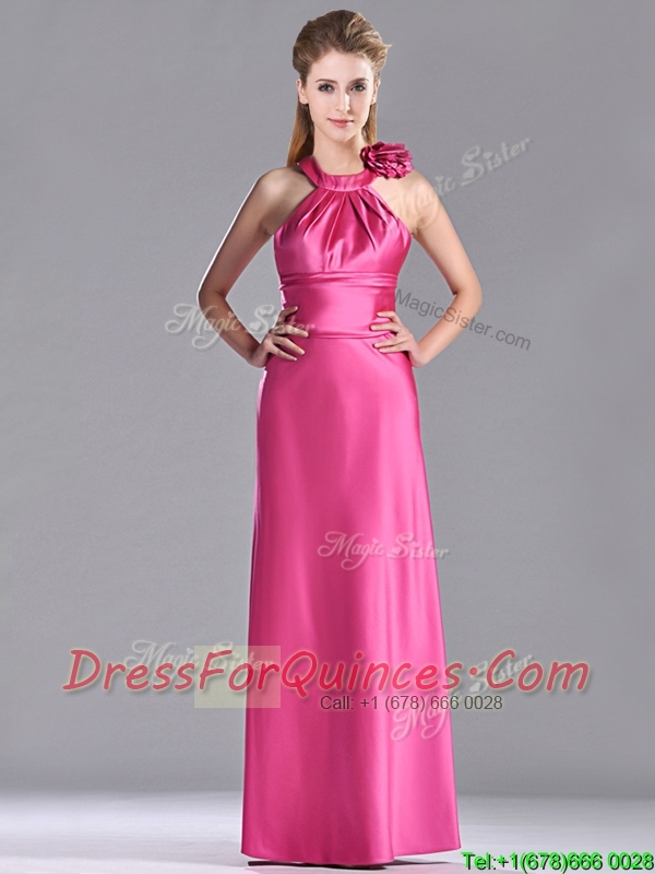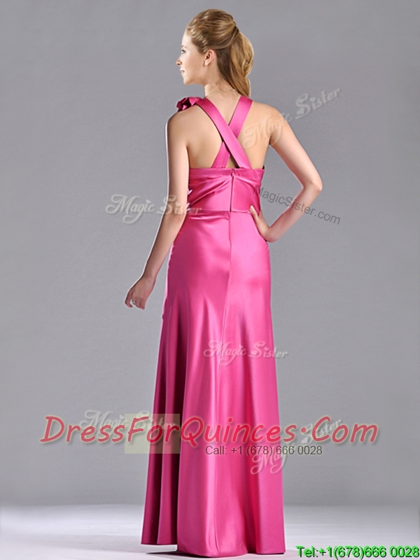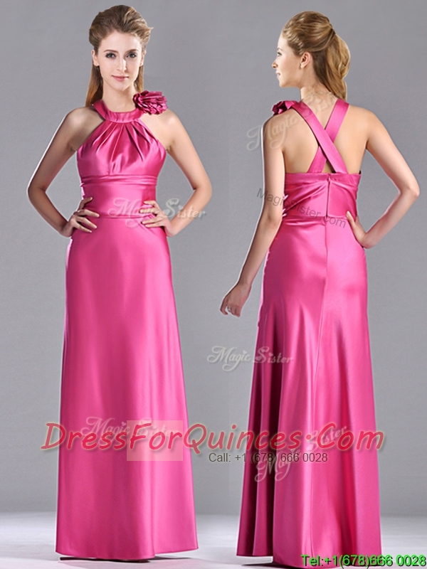 New Style Hand Crafted Flowers Hot Pink Dama Dress with Criss Cross