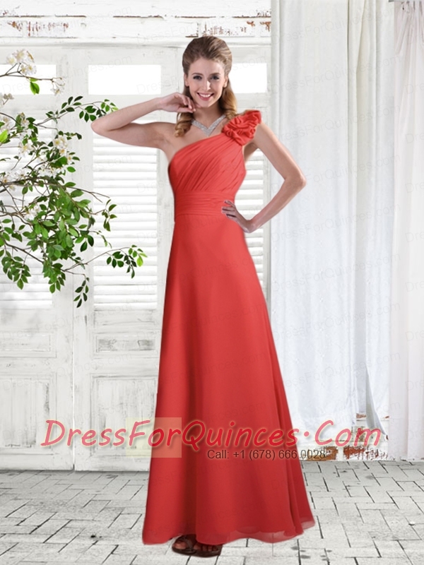 New Style Ruching One Shoulder Empire Dama Dress for 2015