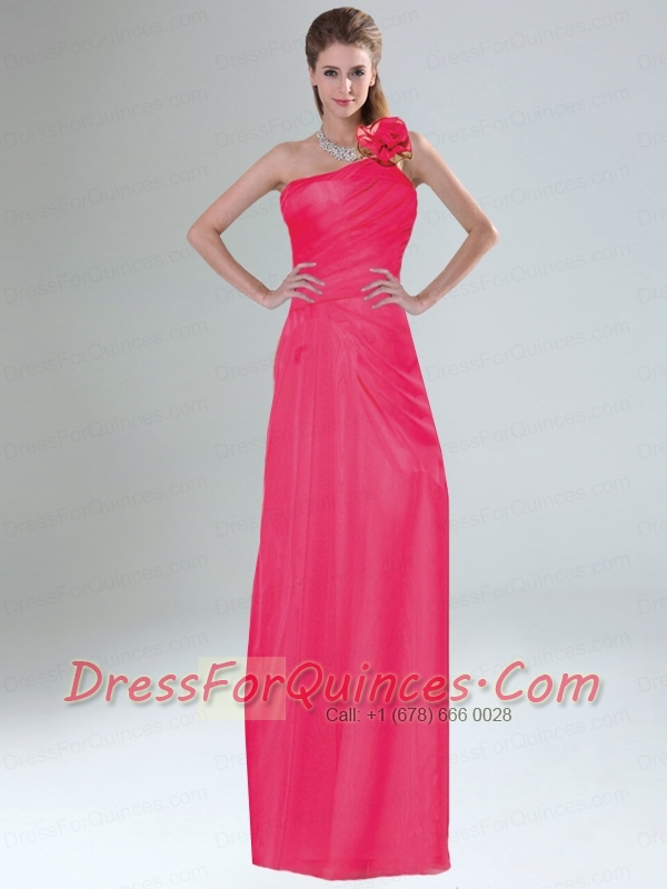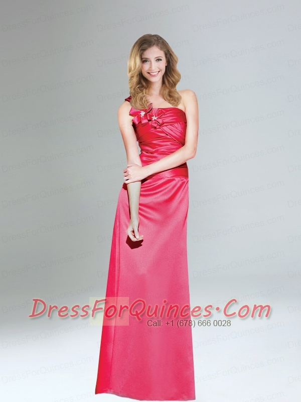 One Shoulder Floor Length Dama Dresses with Hand Made Flowers