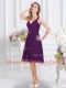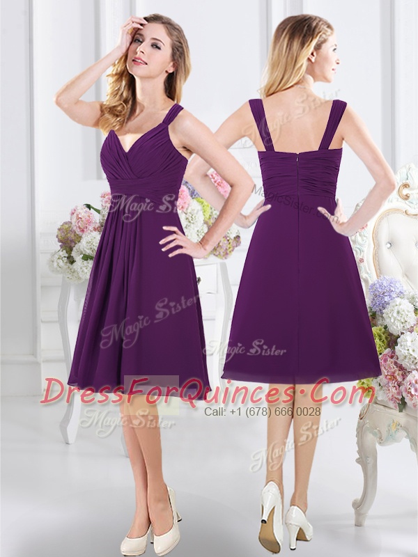 Purple Chiffon Zipper Straps Sleeveless Knee Length Quinceanera Court Dresses Ruching