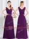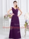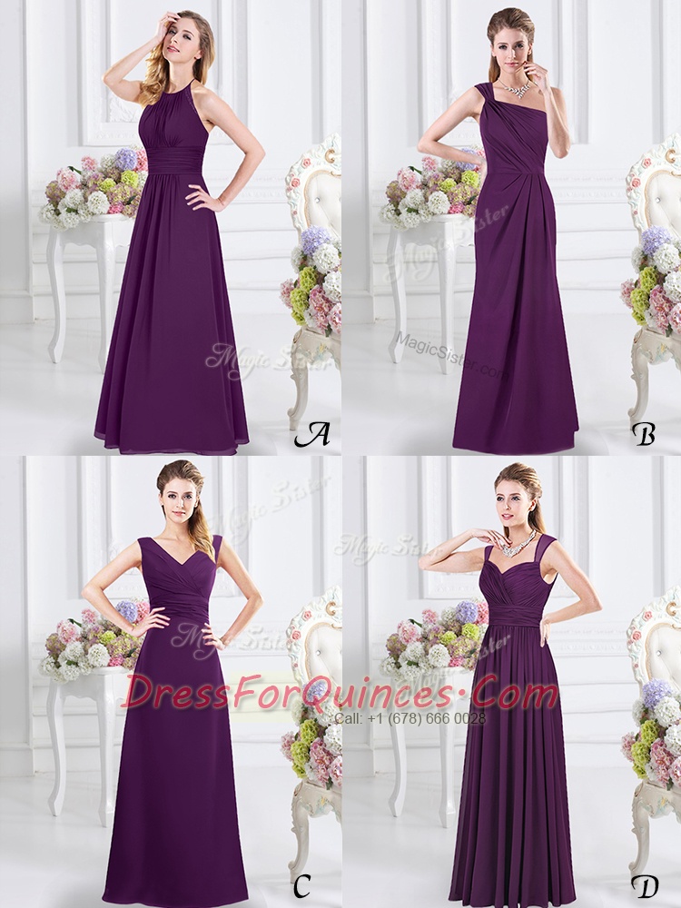 Purple Column/Sheath Ruching Vestidos de Damas Zipper Chiffon Sleeveless Floor Length