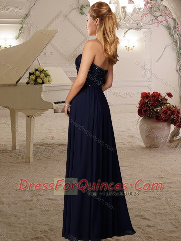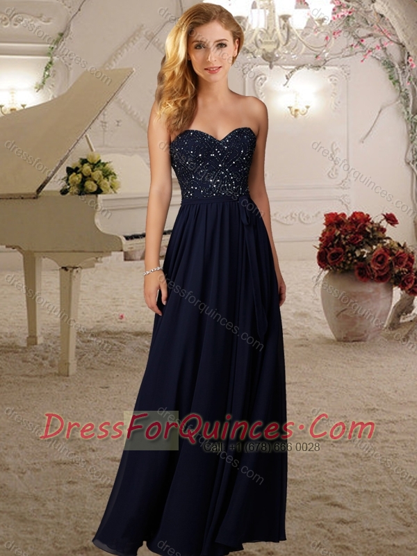 Romantic Empire Beaded Bodice Dama Dress in Navy Blue