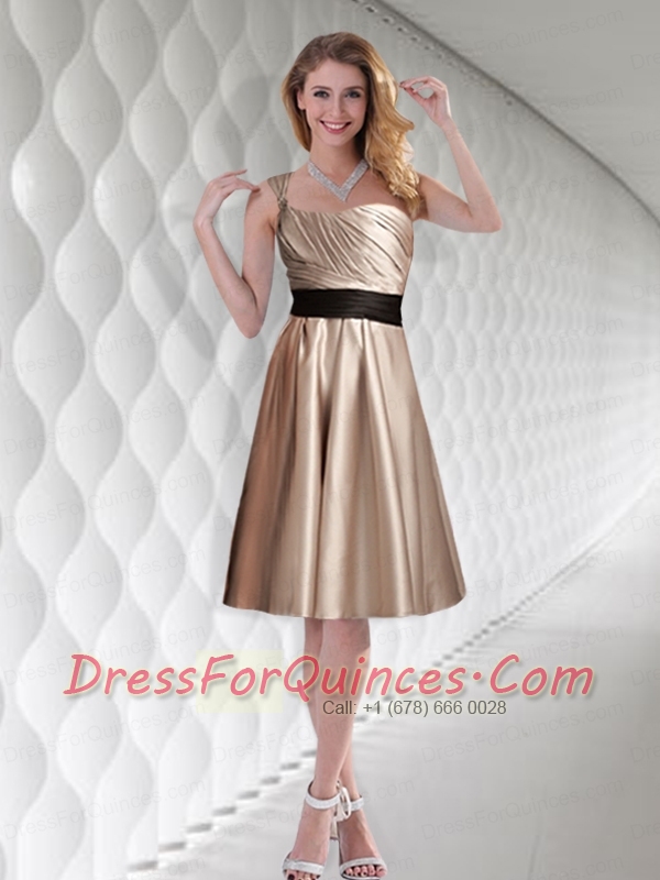 Ruching Belt One Shoulder Empire Dama Dress with Mini Length