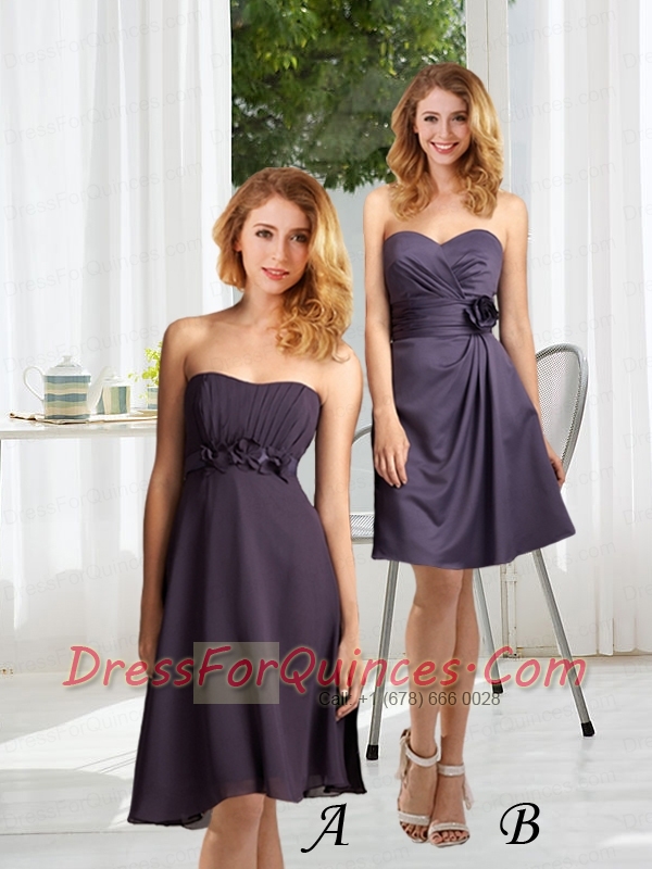 Ruching Sweetheart Empire 2015 Dama Dress with Hand Made Flowers