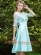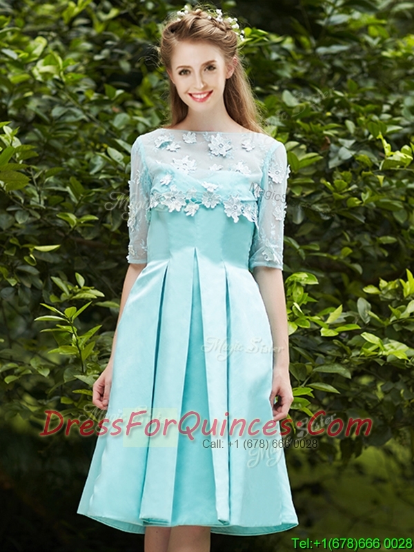 See Through Bateau Half Sleeves Appliques Dama Dresses in Apple Green