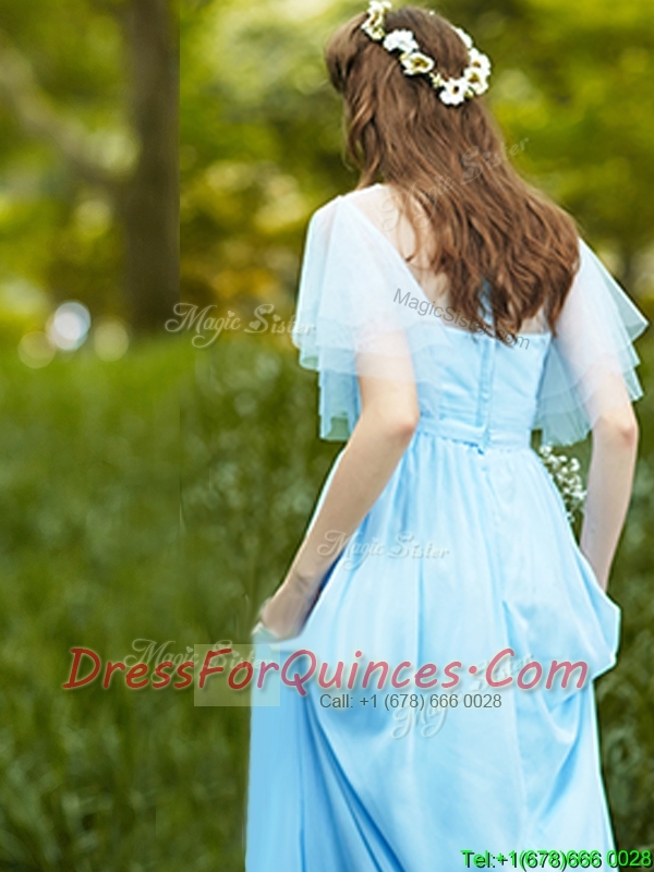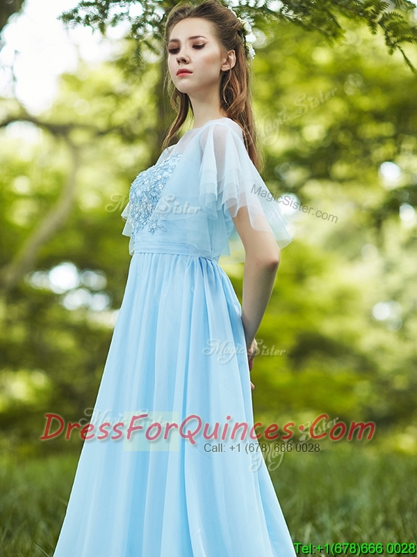 See Through Bateau Short Sleeves Dama Dresses with Appliques