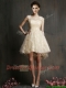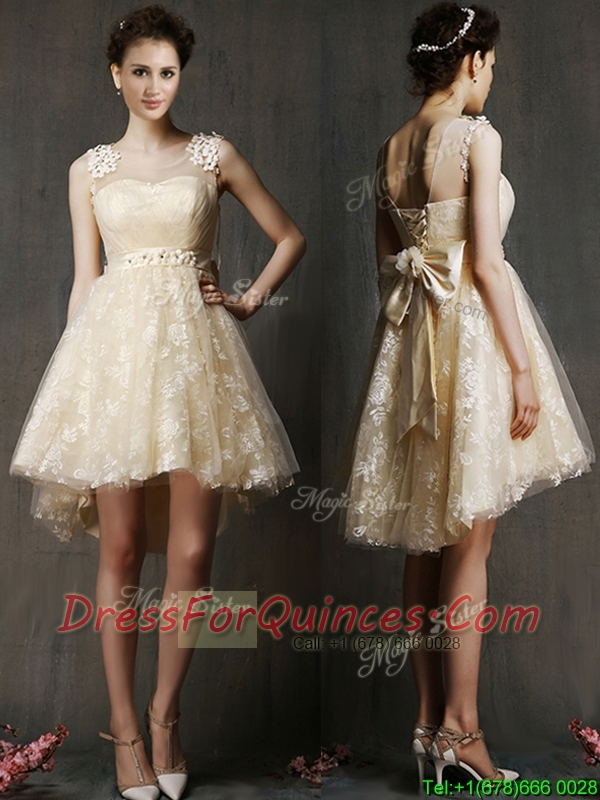 See Through Scoop Champagne Dama Dresses with Hand Made Flowers and Bowknot