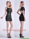 Sexy Criss Cross Beaded Black Short Dama Dress with One Shoulder