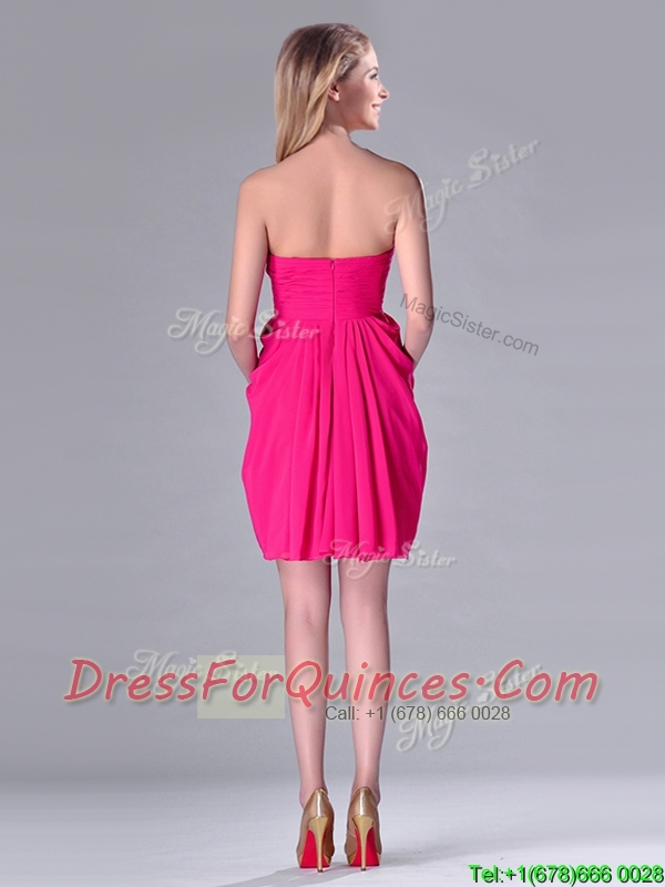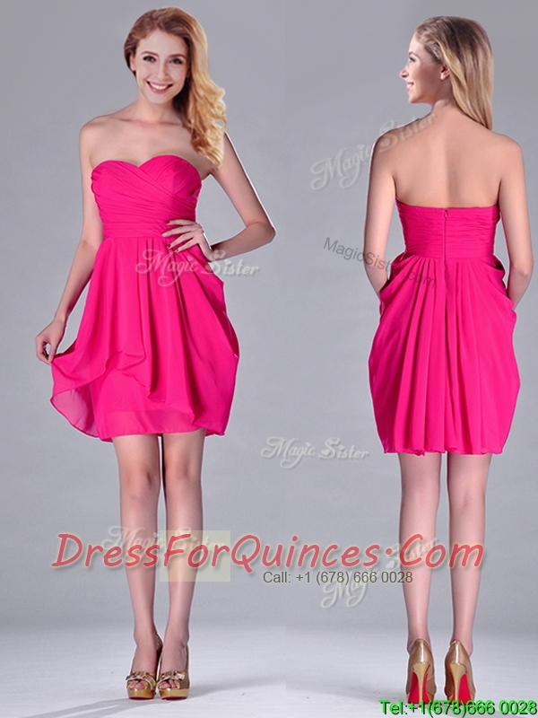 Simple Empire Sweetheart Chiffon Hot Pink Short Dama Dress for Homecoming