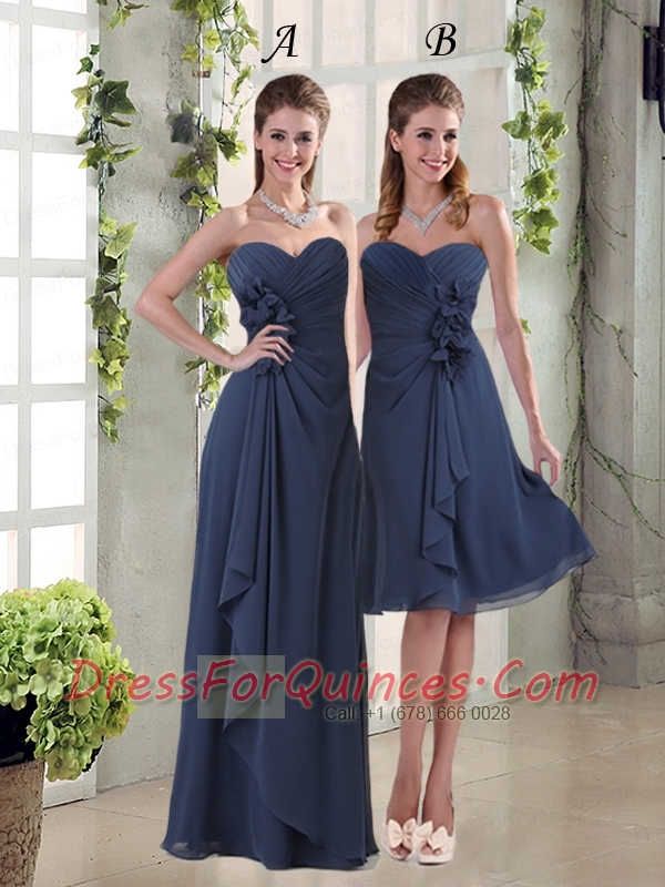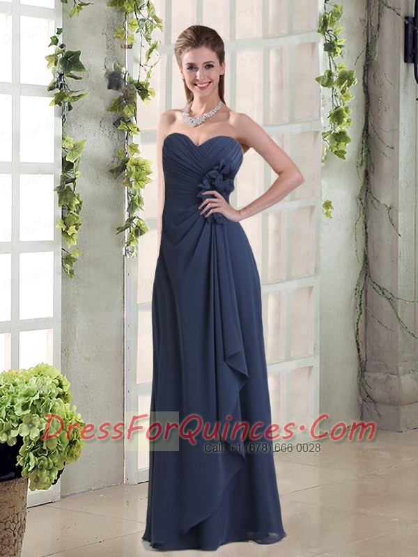 Sweetheart Ruching and Hand Made Flowers Dama Dresses in Navy BlueSweetheart Ruching and Hand Made Flowers Dama Dresses in Navy BlueSweetheart Ruching and Hand Made Flowers Dama Dresses in Navy Blue
