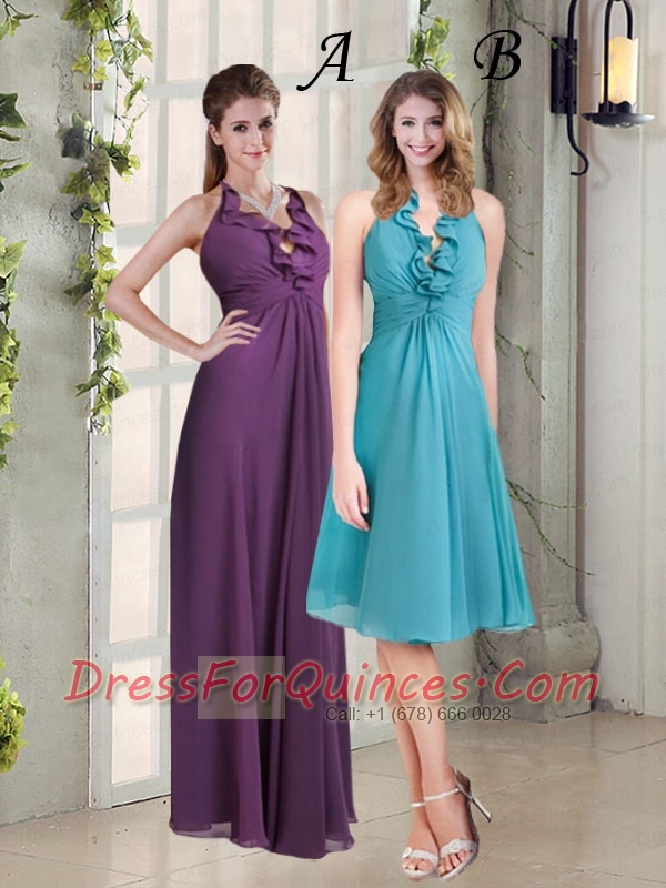 The Super Hot Empire Halter 2015 Dama Dress with Ruffles