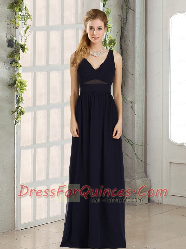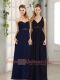 V Neck Empire Zipper Up Navy Blue Dama Dress for 2015