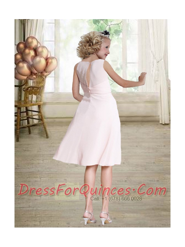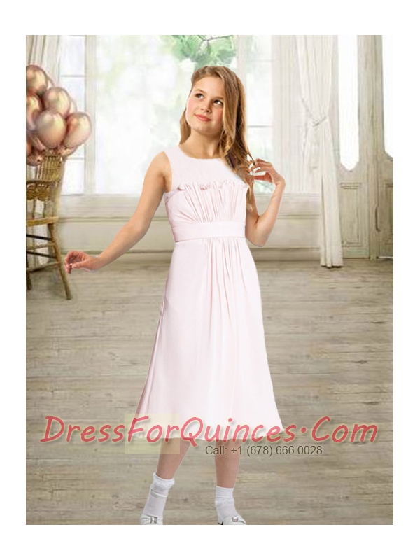 A-Line Ruching Scoop 2014 Popular Flower Girl Dress with Tea-length