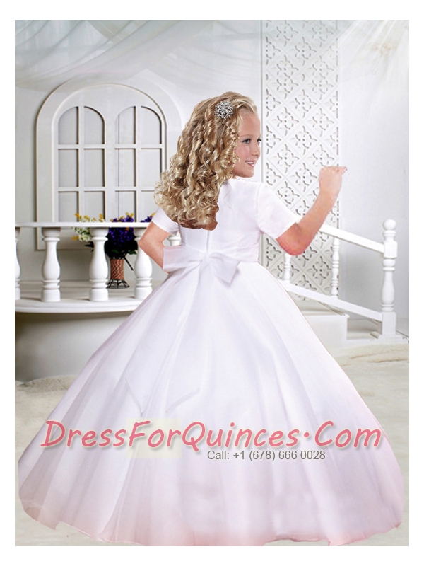 Ball Gown Scoop Short Sleeveless Flower Girl Dresses with Bowknot