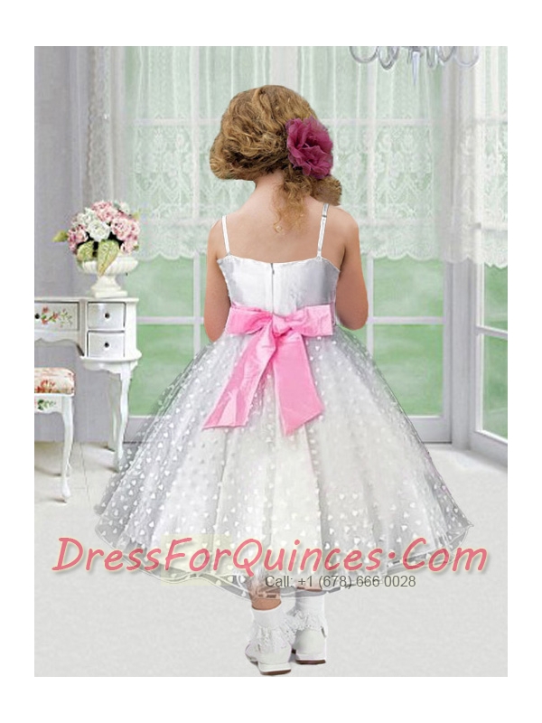 Beautiful A-Line Tea-length Flower Girl Dress with Bowknot for 2014