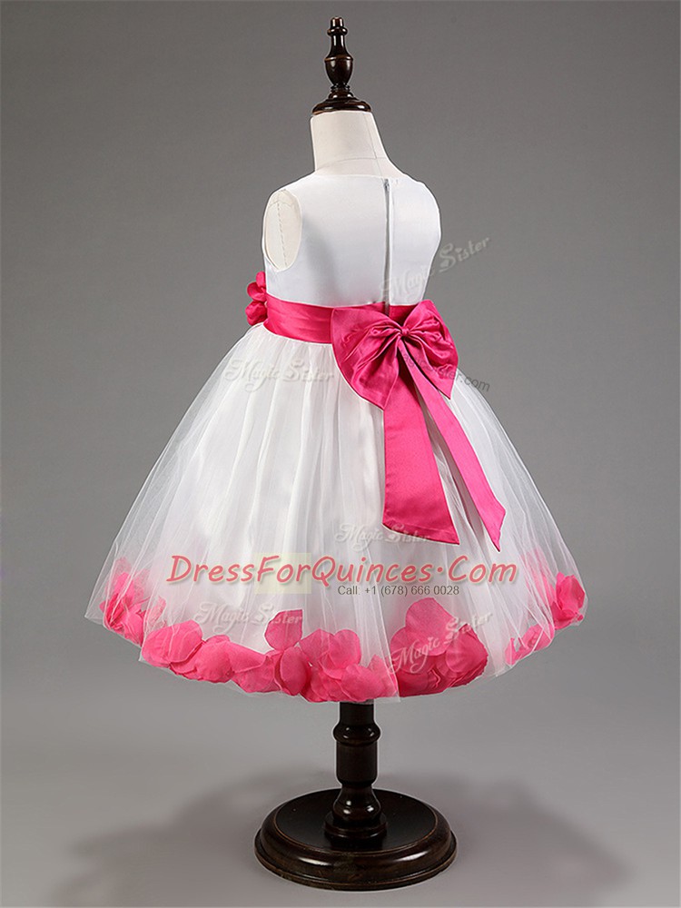 Best Selling White Sleeveless Appliques and Hand Made Flower Knee Length Flower Girl Dresses