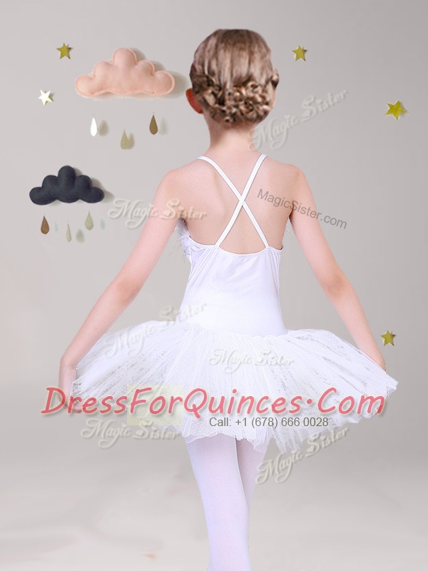 Classical White A-line Appliques Flower Girl Dresses Criss Cross Lace Sleeveless Mini Length