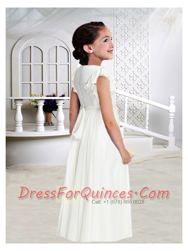 Comfortable Empire Ruching and Sashes Short Sleeves Chiffon Flower Girl Dress for 2014