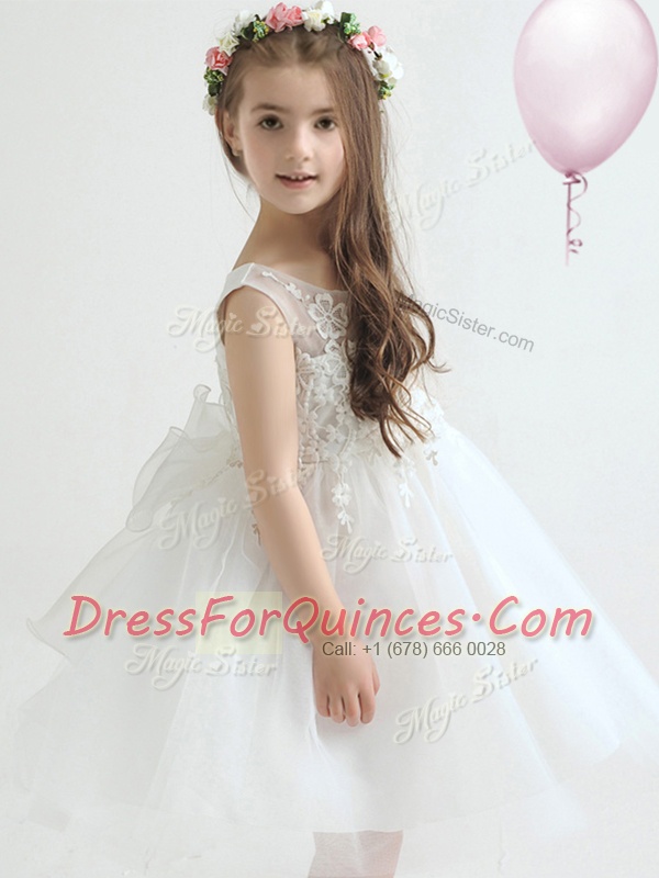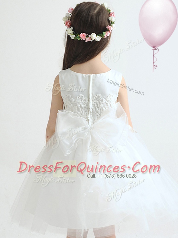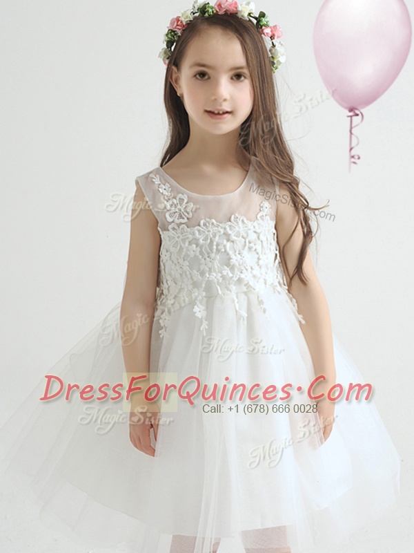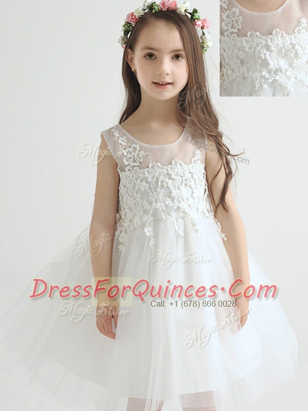 Fantastic Scoop White Sleeveless Tulle Zipper Flower Girl Dresses for Party and Quinceanera and Wedding Party