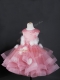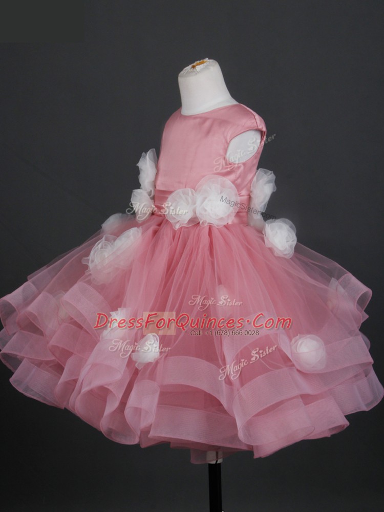 Fine Cap Sleeves Tulle Knee Length Zipper Flower Girl Dresses for Less in Pink with Ruffles and Hand Made Flower