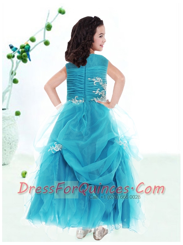 Popular A-Line Scoop Appliques Flower Girl Dress in Blue for 2014
