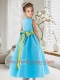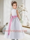 Popular Scoop Ankle-length Satin Flower Girl Dress with Belt