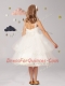 Straps Sleeveless Tulle Tea Length Zipper Flower Girl Dresses for Less in White with Appliques and Ruffled Layers and Bowknot