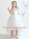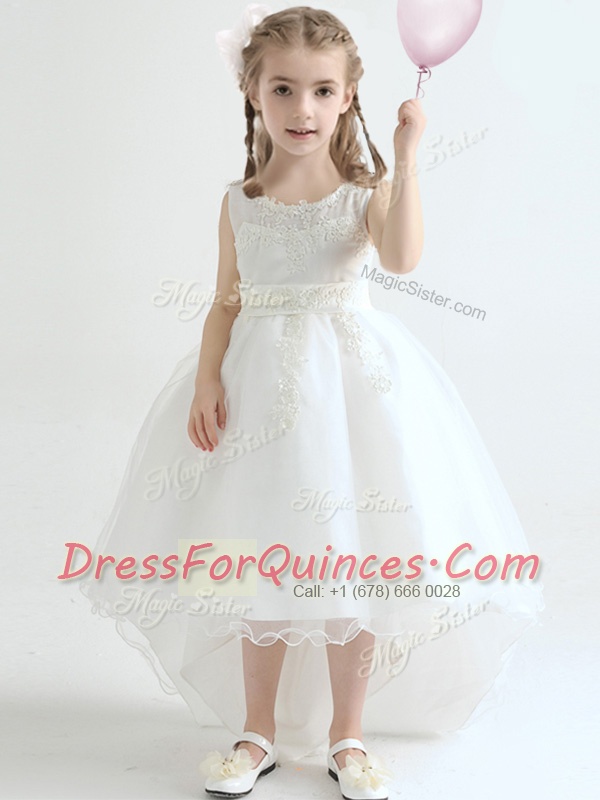 Sumptuous White Organza Lace Up Scoop Sleeveless High Low Flower Girl Dress Appliques
