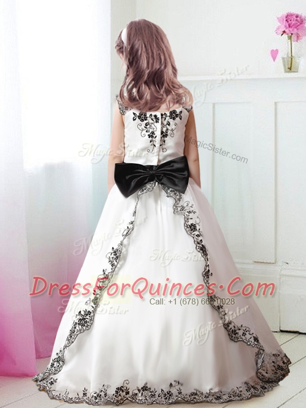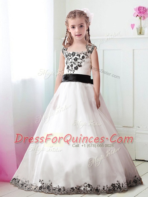 Super Straps White Zipper Flower Girl Dresses Appliques and Belt Sleeveless Floor Length