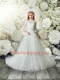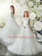 Superior White 3 4 Length Sleeve Tulle Brush Train Clasp Handle Flower Girl Dress for Wedding Party