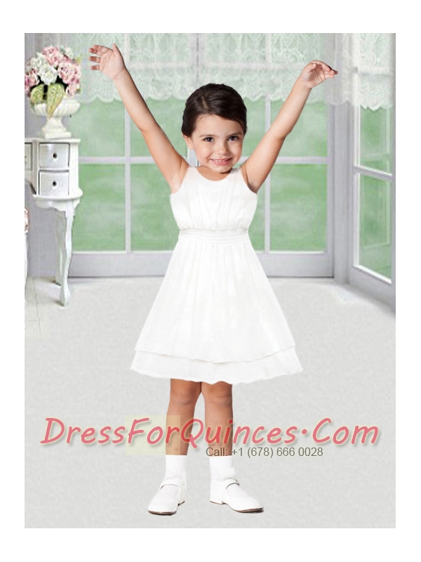 Sweet A-Line Scoop Mini-length Flower Girl Dress in White