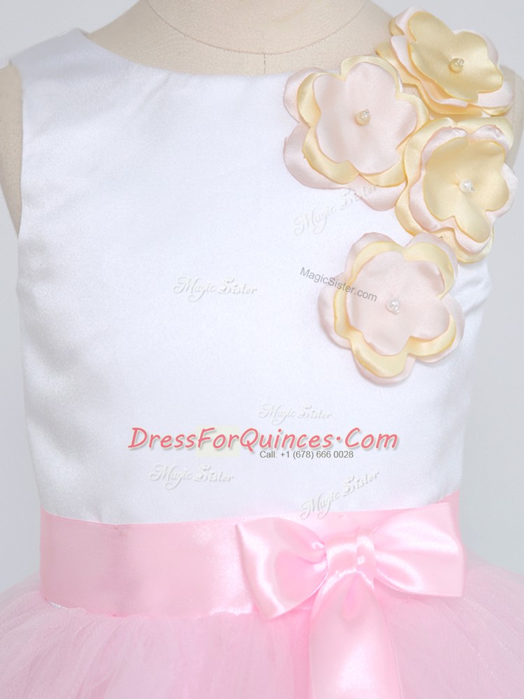 Tulle Scoop Sleeveless Zipper Lace and Appliques Flower Girl Dress in Pink And White