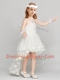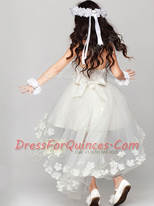 White A-line Halter Top Sleeveless Organza High Low Zipper Appliques and Bowknot Flower Girl Dresses for Less
