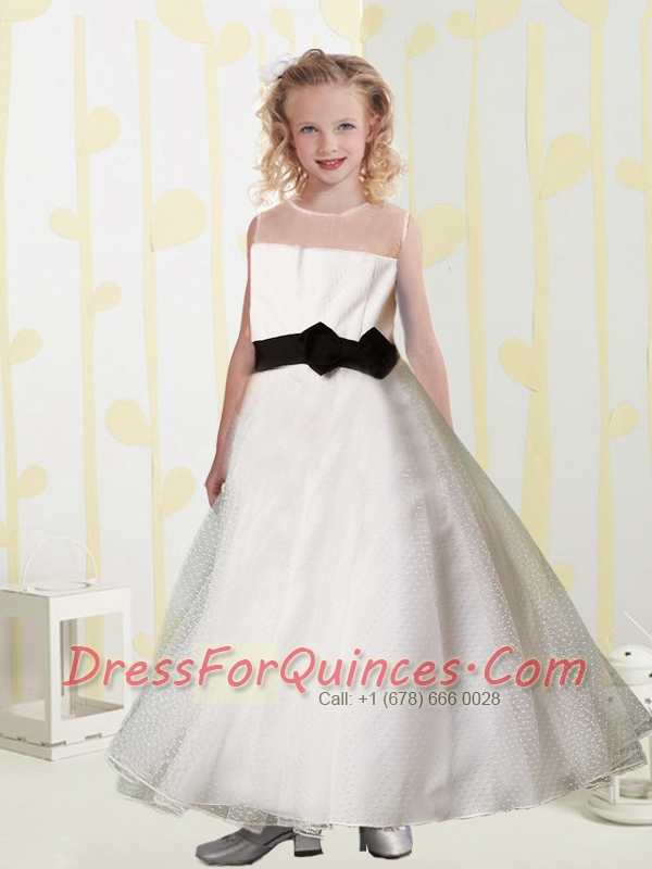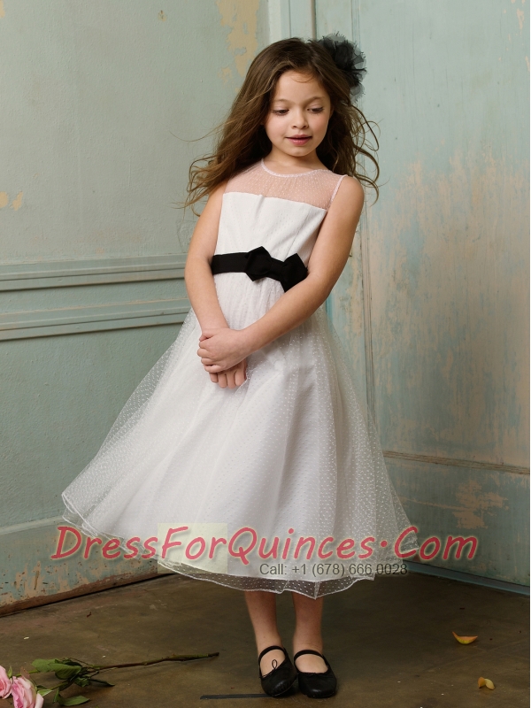 White A-Line Sleeveless Organza Tea-length Flower Girl Dress For 2014
