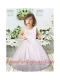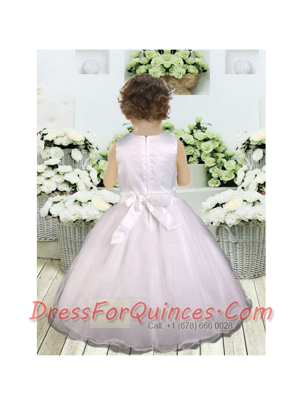 White Ball Gown Scoop Flower Girl Dress with Appliques Bowknot for 2014