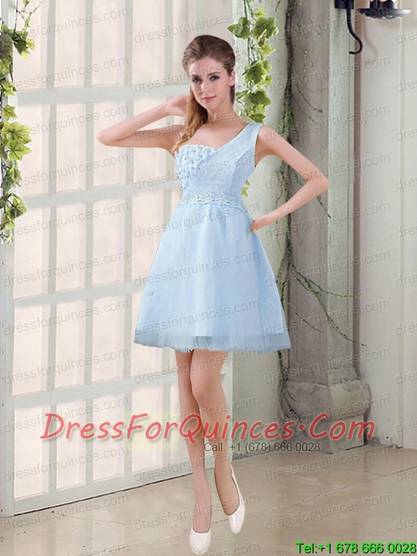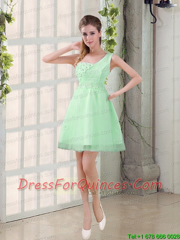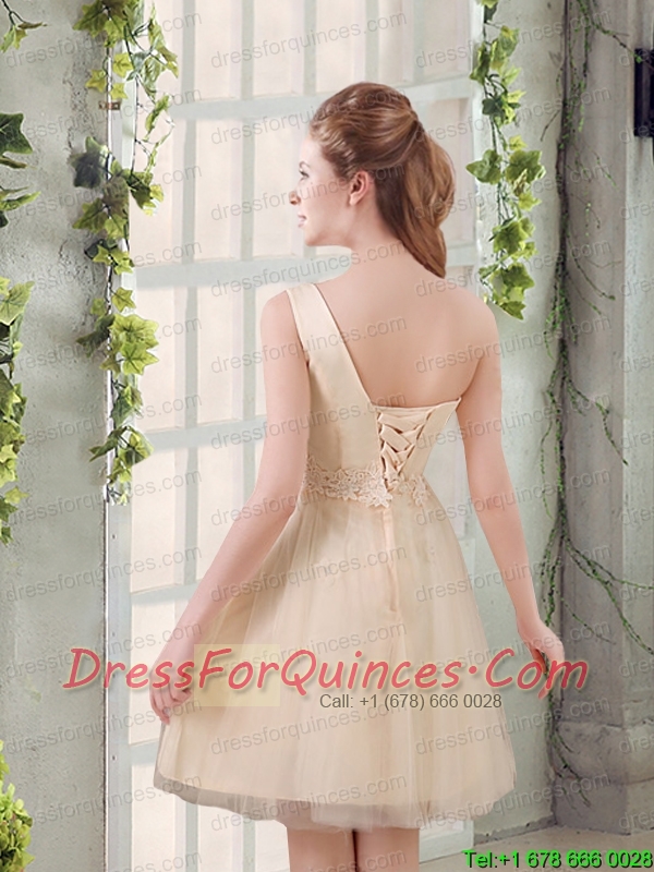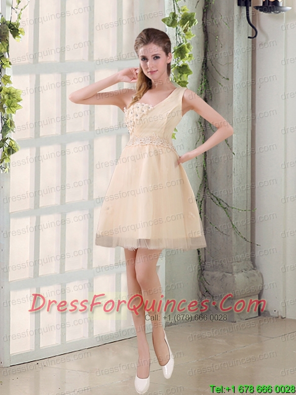 2015 Champagne One Shoulder A Line Appliques Prom Dress
