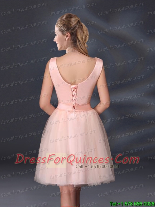 2015 Sweet Belt Mini Length Prom Dresses with V Neck
