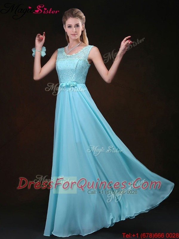 2016 Cheap Scoop Lace Prom Dresses with Lace