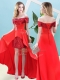 Custom Design Red Lace Up Off The Shoulder Beading Dress for Prom Elastic Woven Satin and Sequined Short Sleeves