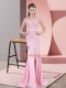 Custom Made Baby Pink Zipper V-neck Lace and Appliques Homecoming Dress Chiffon Sleeveless Sweep Train