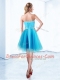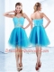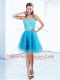 Customized Blue Sleeveless Organza Lace Up for Prom and Party
