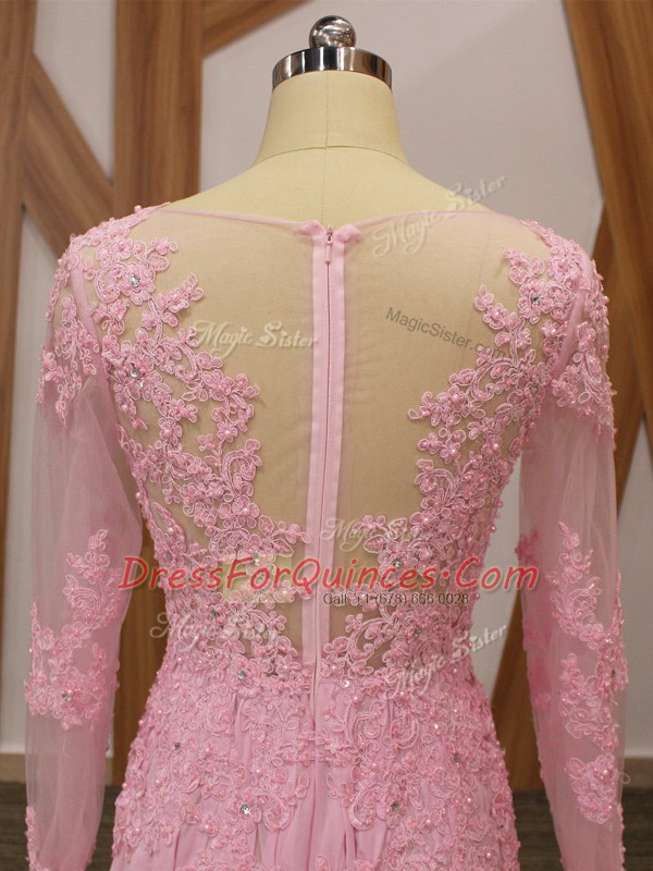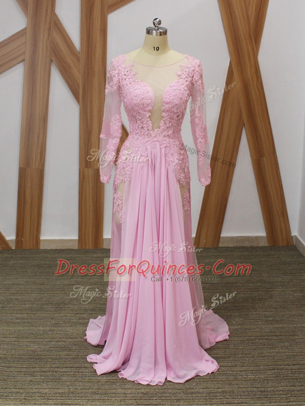 Empire Long Sleeves Baby Pink Dress for Prom Brush Train Zipper
