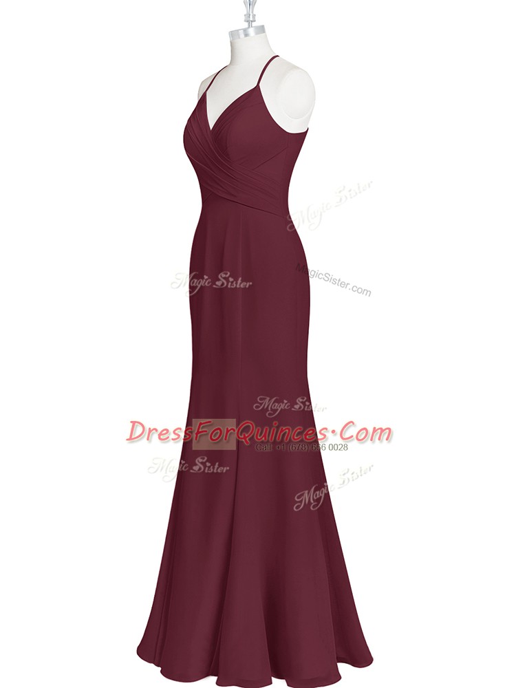 Excellent Burgundy Sleeveless Chiffon Criss Cross for Prom and Party and Military Ball