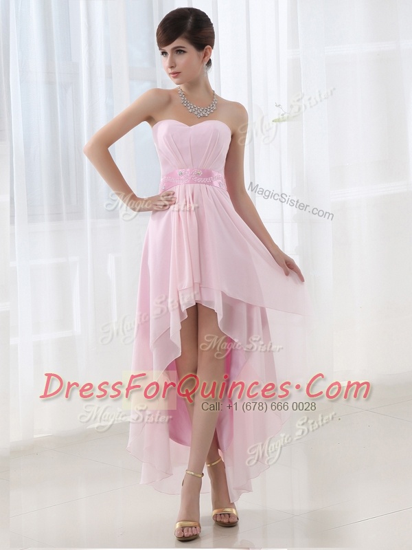 Excellent High Low Baby Pink Prom Dresses Chiffon Sleeveless Beading